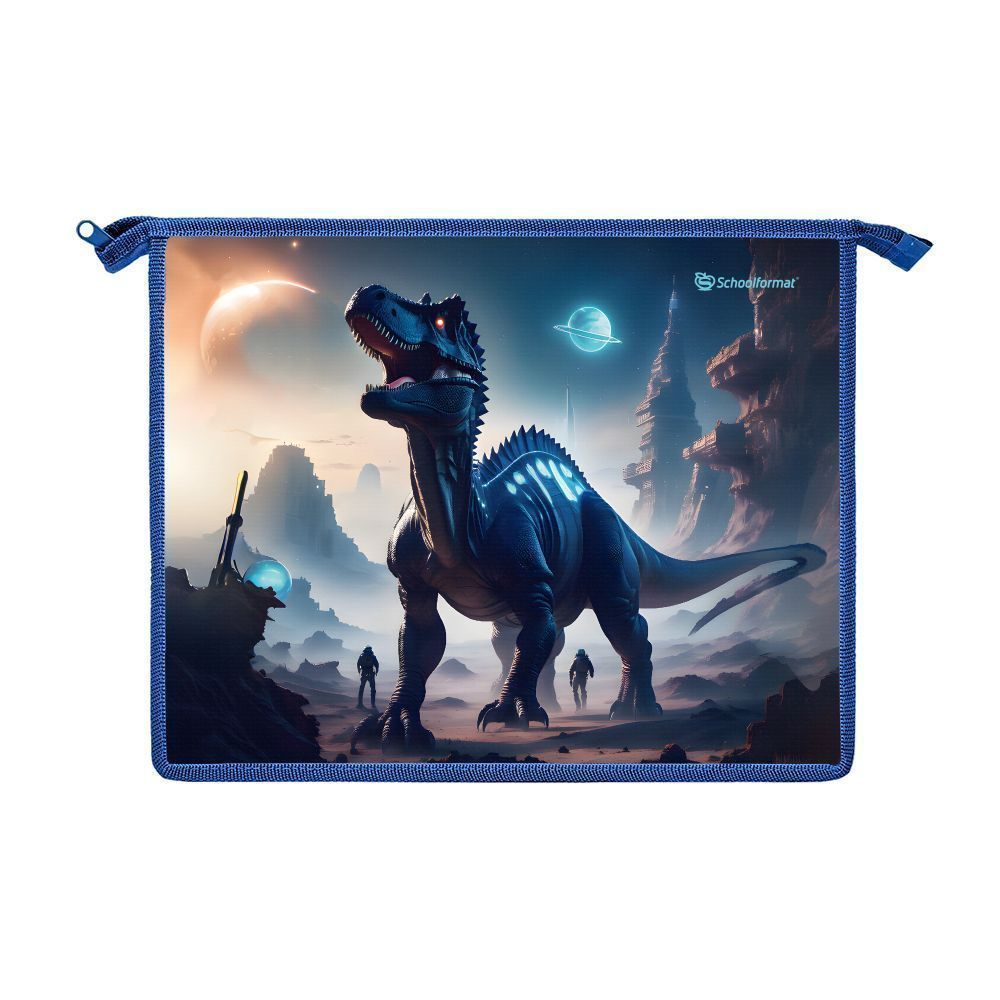 Папка для тетрадей 1 отд. А5 Schoolformat КОСМИЧЕСКИЕ ДИНОЗАВРЫ молния 235х190х50 мм синий пластик, картон для мальчиков