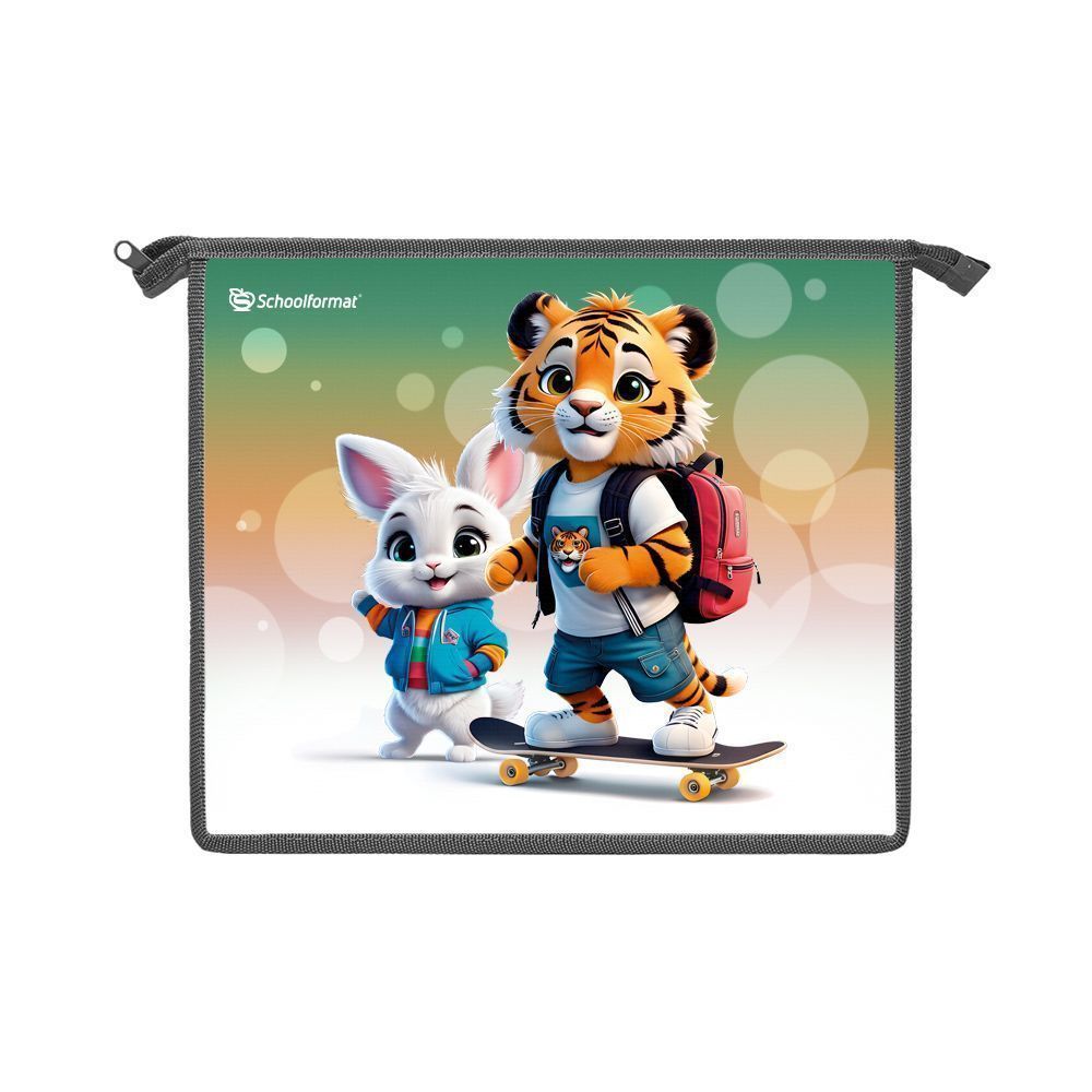 Папка для тетрадей 1 отд. А5 Schoolformat ЯРКИЕ ЗВЕРЯТА молния 235х190х50 мм разноцвет. пластик, полиэстер универс.