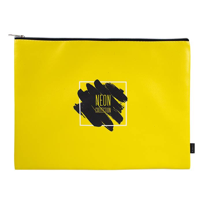 Папка 1 отделение, А4 LOREX NEON молния сверху 330х260 мм желт. иск. кожа для девочек