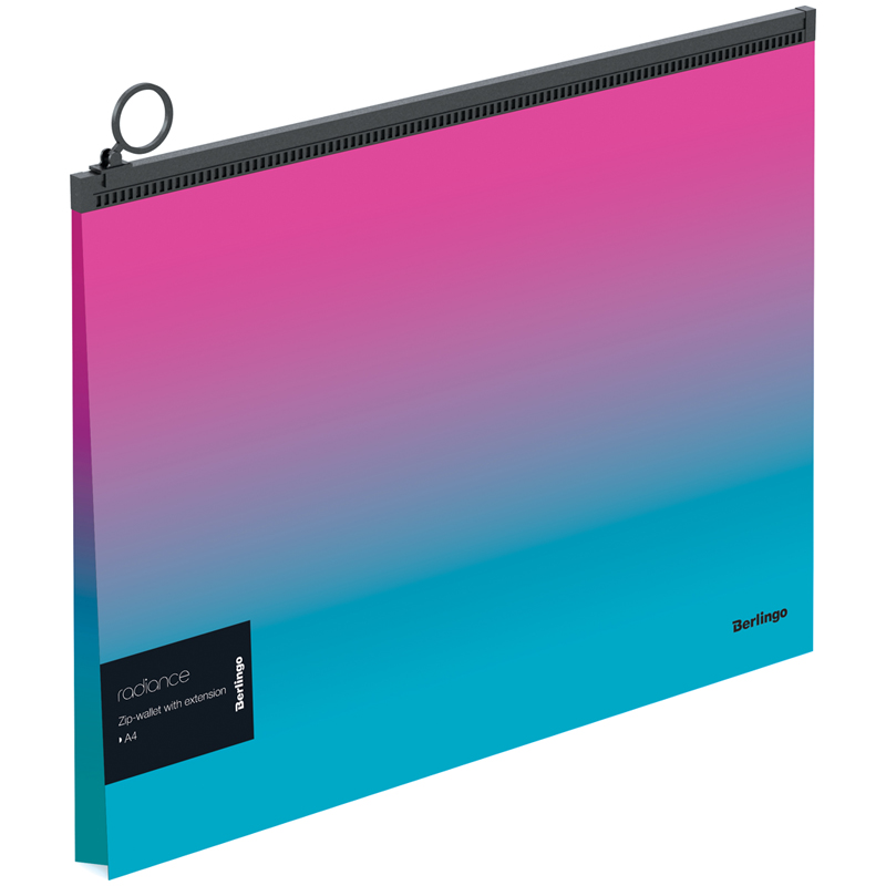 Папка-конверт на молнии с расширением Berlingo "Radiance", 180мкм, розовый/голубой градиент