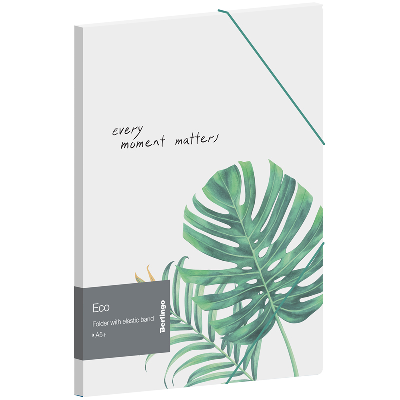 Папка пластиковая на резинках Berlingo "Eco" формата А5+ белого цвета с рисунком. Белый цвет внутренней поверхности. Надежные застежки-резинки салатового цвета. Быстрый доступ к содержимому. Изготовлена из высококачественного полипропилена с матовой текстурой поверхности "песок", на которой не видно отпечатков пальцев и мелких царапин. Предназначена для хранения тетрадей и документов. Толщина обложки 600мкм. Папка вмещает до 300 листов. Упакована в индивидуальный прозрачный пакет по форме.