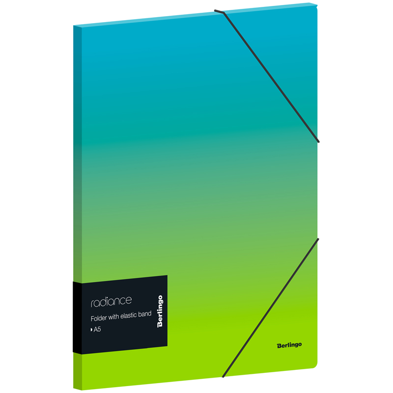 Папка для тетрадей на резинке Berlingo "Radiance" А5+, 600мкм, голубой/зеленый градиент, с рисунком