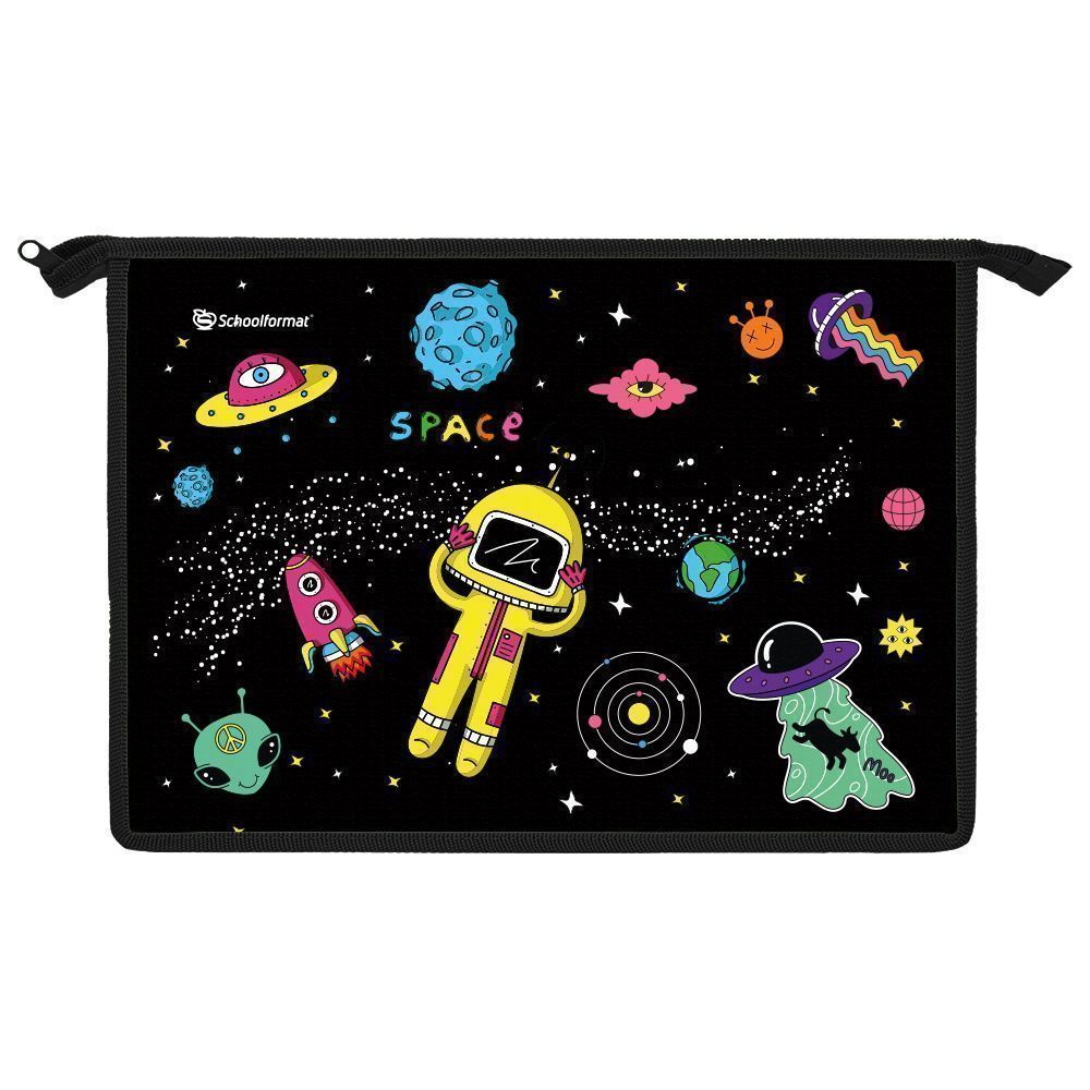 Папка для тетрадей, 1 отделение, А4 Schoolformat КОСМИЧЕСКАЯ ВЕЧЕРИНКА молния пластик 325х230х55 мм черн. для мальчиков