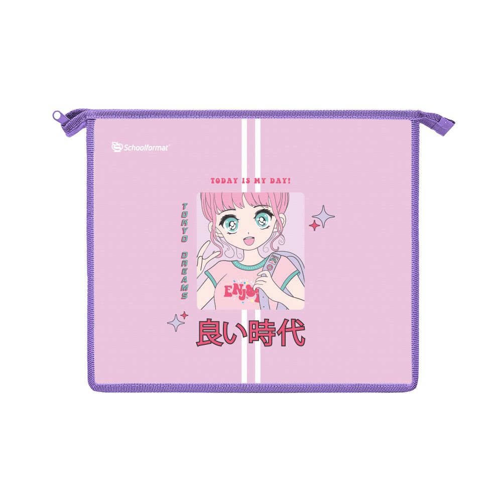 Папка для тетрадей 1 отделение, А5 Schoolformat ДЕВОЧКА АНИМЕ молния сверху 235х190х50 мм роз. пластик для девочек