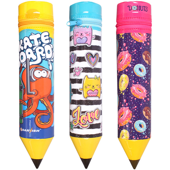 Пенал мягкий тубус "Darvish" 26*5см в форме карандаша ассорти