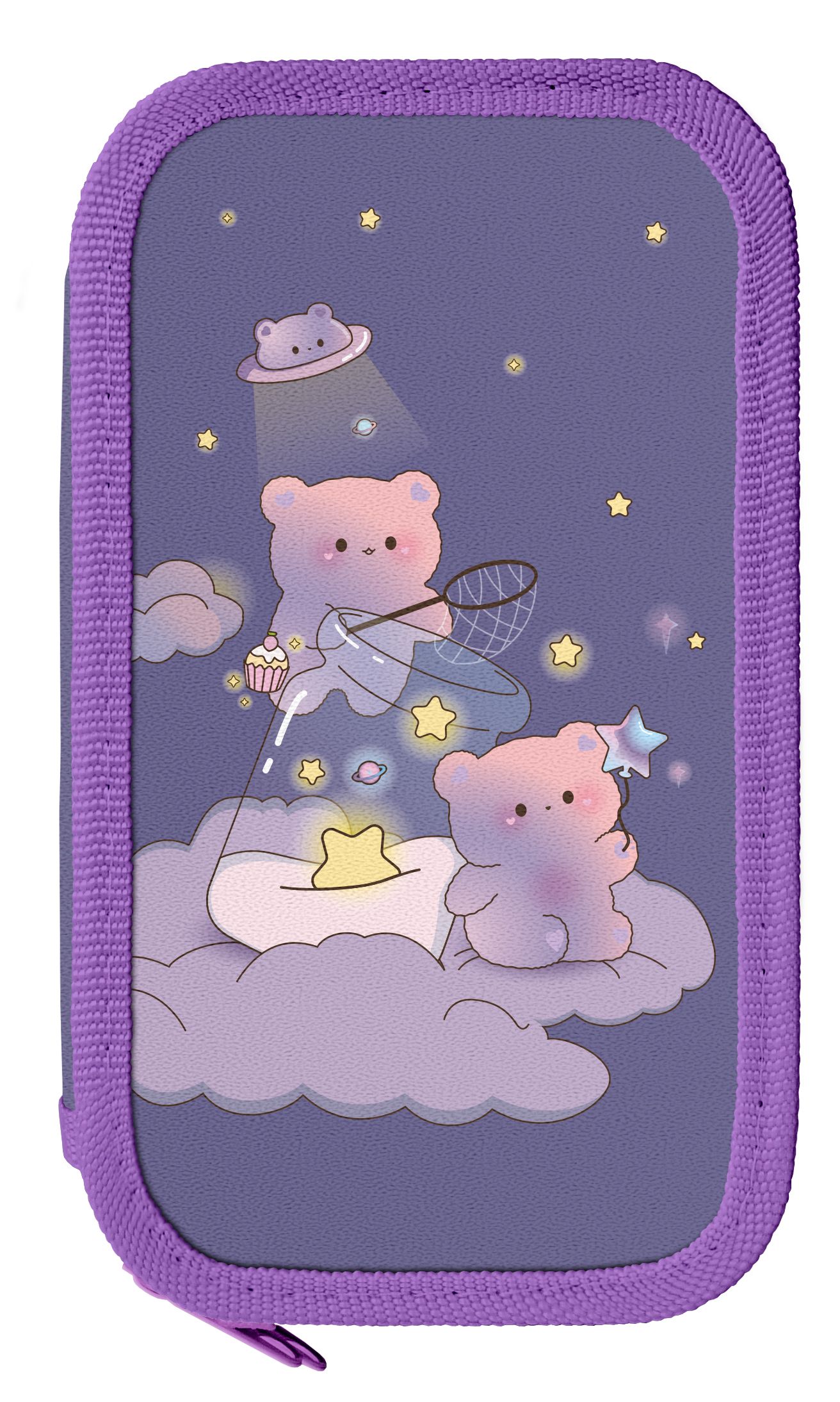 Пенал двухсекционный Schoolformat МИШКИ ВОЛШЕБНИКИ 190х105 мм сирен. картон