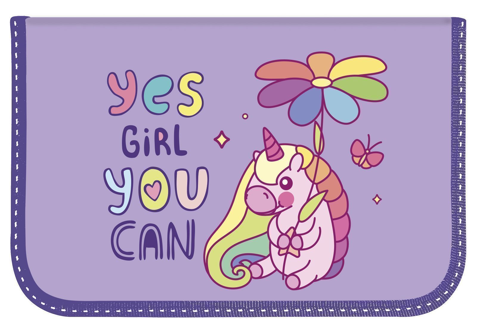 Пенал 1 секц. Schoolformat FAIRYTALE UNICORN 190х105 откид. планка молния с тканевым покрытием