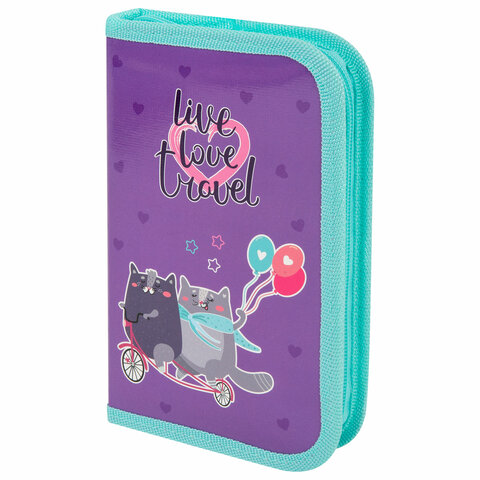 Пенал ПИФАГОР, 1 отделение, ламинированный картон, 19х11 см, "Bike cats", 272241