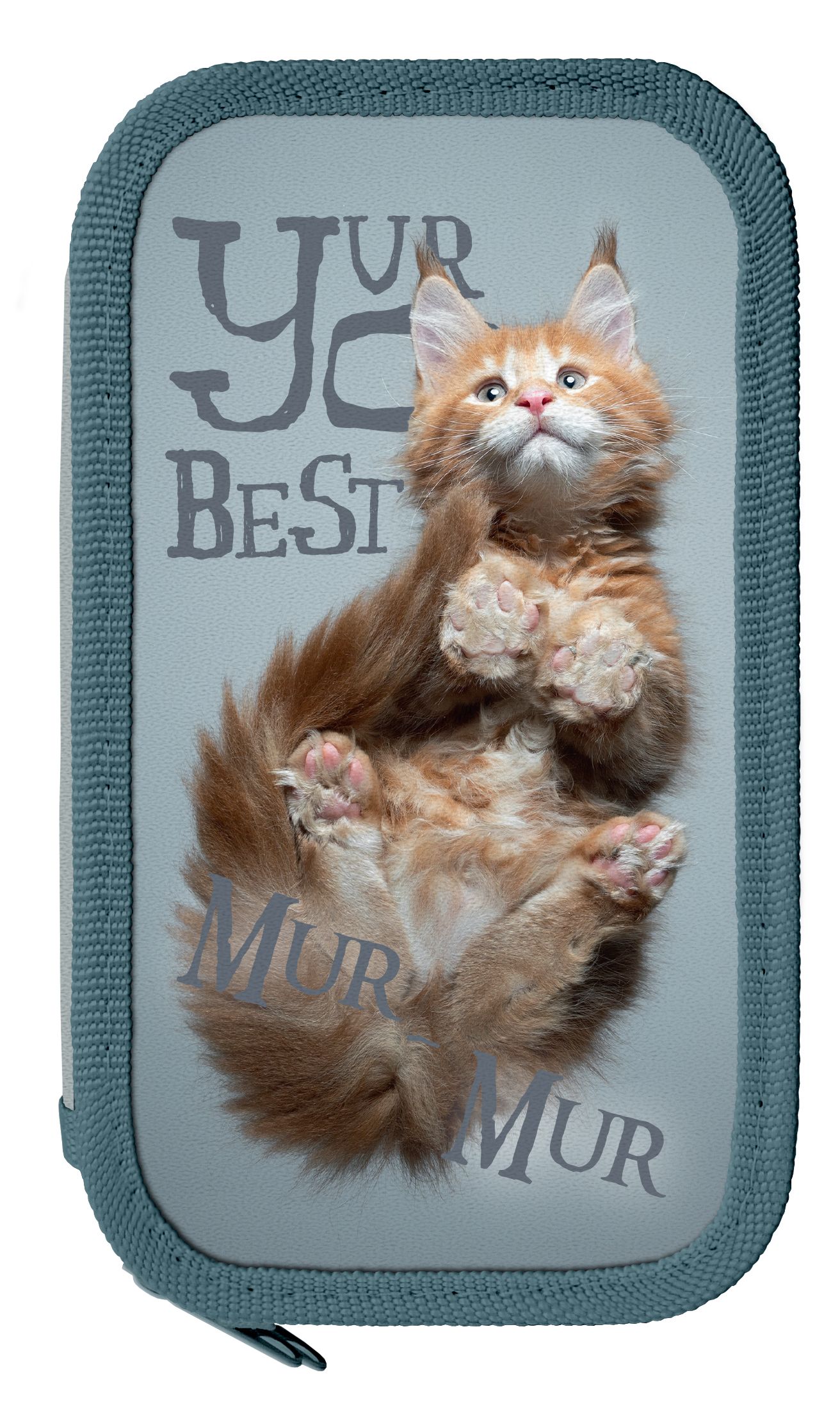 Пенал 2 секции, большой Schoolformat ЛАПЫ КОТА 190х105 мм серый картон