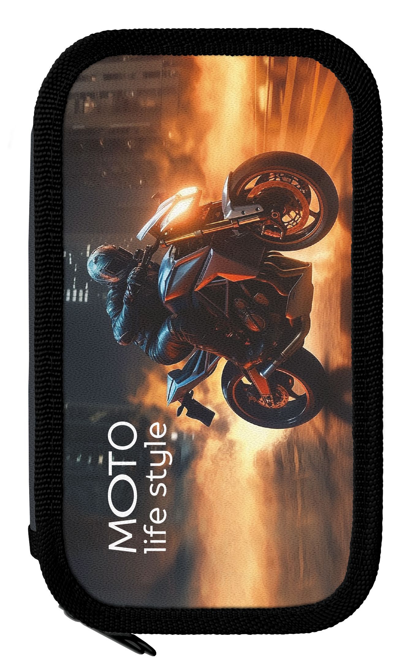Пенал 2 секции, большой Schoolformat МОТО НОЧЬ 190х105 мм разноцвет. картон