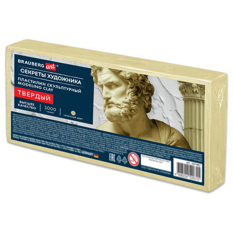 Скульптурный пластилин BRAUBERG ART "Секреты художника" предназначен для моделирования и создания скульптур, макетов, поделок. Идеально подходит не только для студентов, но и для всех, кто хочет научиться моделированию. Скульптурный пластилин пользуется широким спросом среди профессионалов и любителей. Его часто используют студенты факультетов скульптуры или ученики художественных школ на учебных занятиях. Отлично держит форму и устойчив к перепадам температуры. Не оставляет пятен, не липнет к рукам. Твердый скульптурный пластилин необходимо дольше разогревать, фигуры из него лучше сохраняют форму. Пластилин весом 1 кг упакован в термоусадочную пленку.Преимущества:- эластичный, податливый;- не оставляет после себя размазанных следов;- легко раскатывается на твёрдой плоскости или в руках;- смыть пятна не составляет труда, специальными средствами выводить не нужно, достаточно воды и мыла;- после того как пластилину придали форму какой-то фигуры, он не застывает, не крошится, эластичность не пропадает.