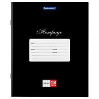 Тетрадь 18 л. BRAUBERG "КЛАССИКА", клетка, обложка картон, ЧЕРНАЯ, 106476