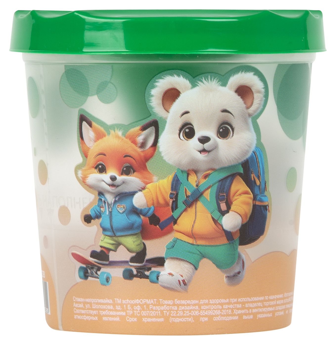 Стакан-непроливайка Schoolformat ЯРКИЕ ЗВЕРЯТА 250 мл зелен. с принтом