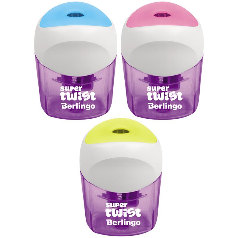 Точилка пластиковая Berlingo "SuperTwist", 1 отверстие, контейнер, ассорти, блистер. BBp_15006