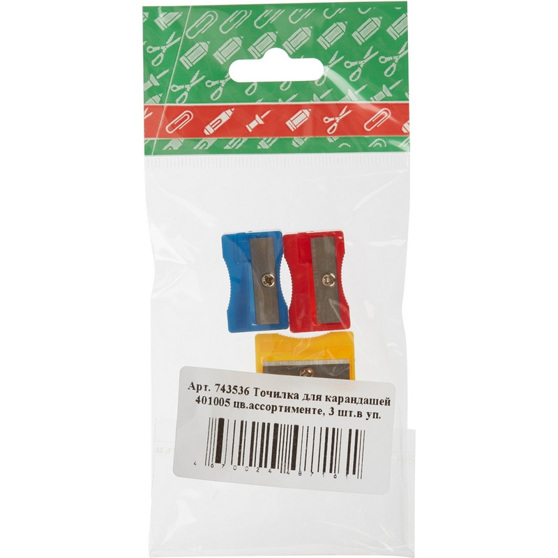 Точилка для карандашей 401005 цв.ассортименте, 3 шт.в уп.