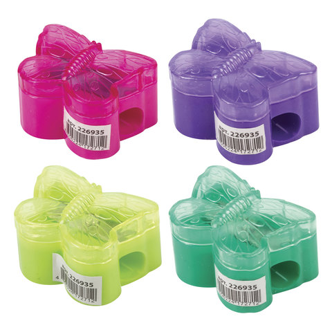 Точилка ПИФАГОР с контейнером, пластиковая, "Бабочка", цвет корпуса ассорти, 226935