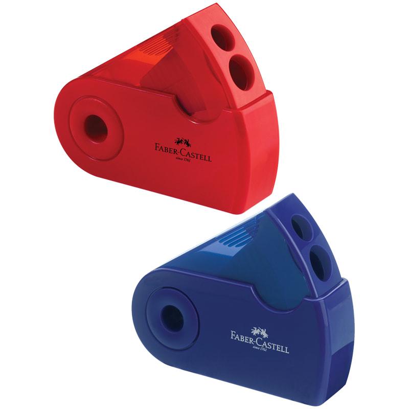 Точилка пластиковая Faber-Castell "Sleeve", 2 отверстия, контейнер, красная/синяя. 182701
