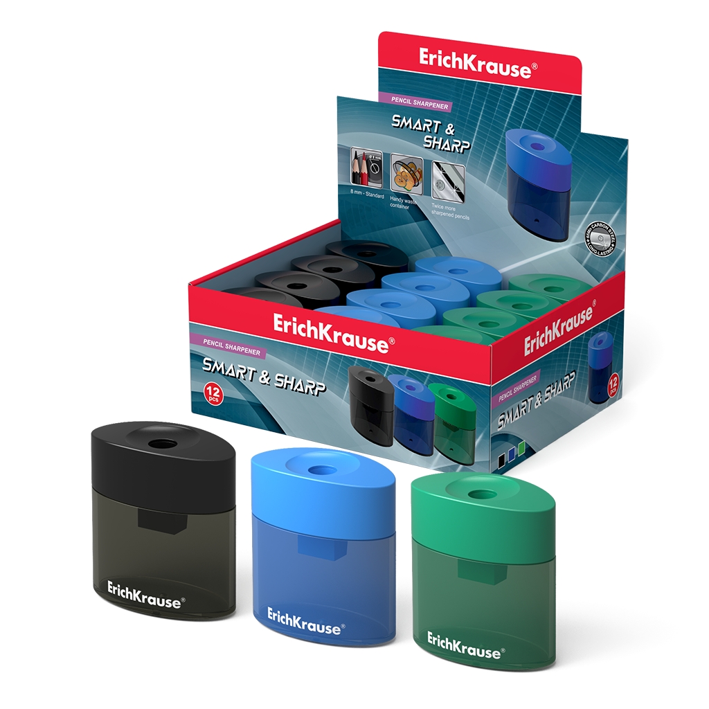 Пластиковая точилка ErichKrause® Smart&Sharp с контейнером, цвет корпуса ассорти (в коробке по 12 шт.)