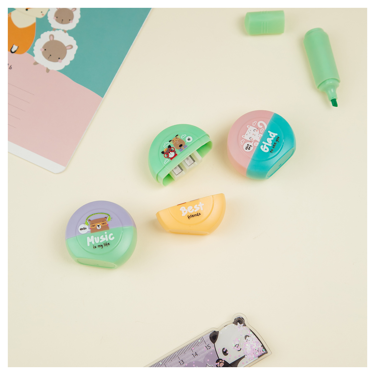 Точилка пластиковая MESHU "Best friends", 2 отверстия, ассорти