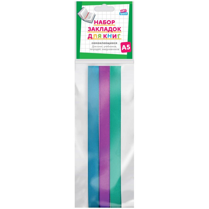 Набор закладок для книг формата А5 (ляссе с клеевым краем), ArtSpace (3 широкие ленты) 255998