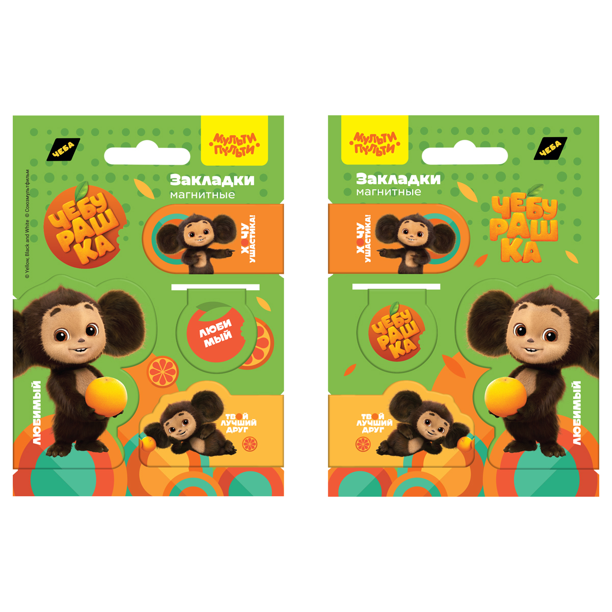 Закладки магнитные для книг, 4шт., Мульти-Пульти "Чебурашка"