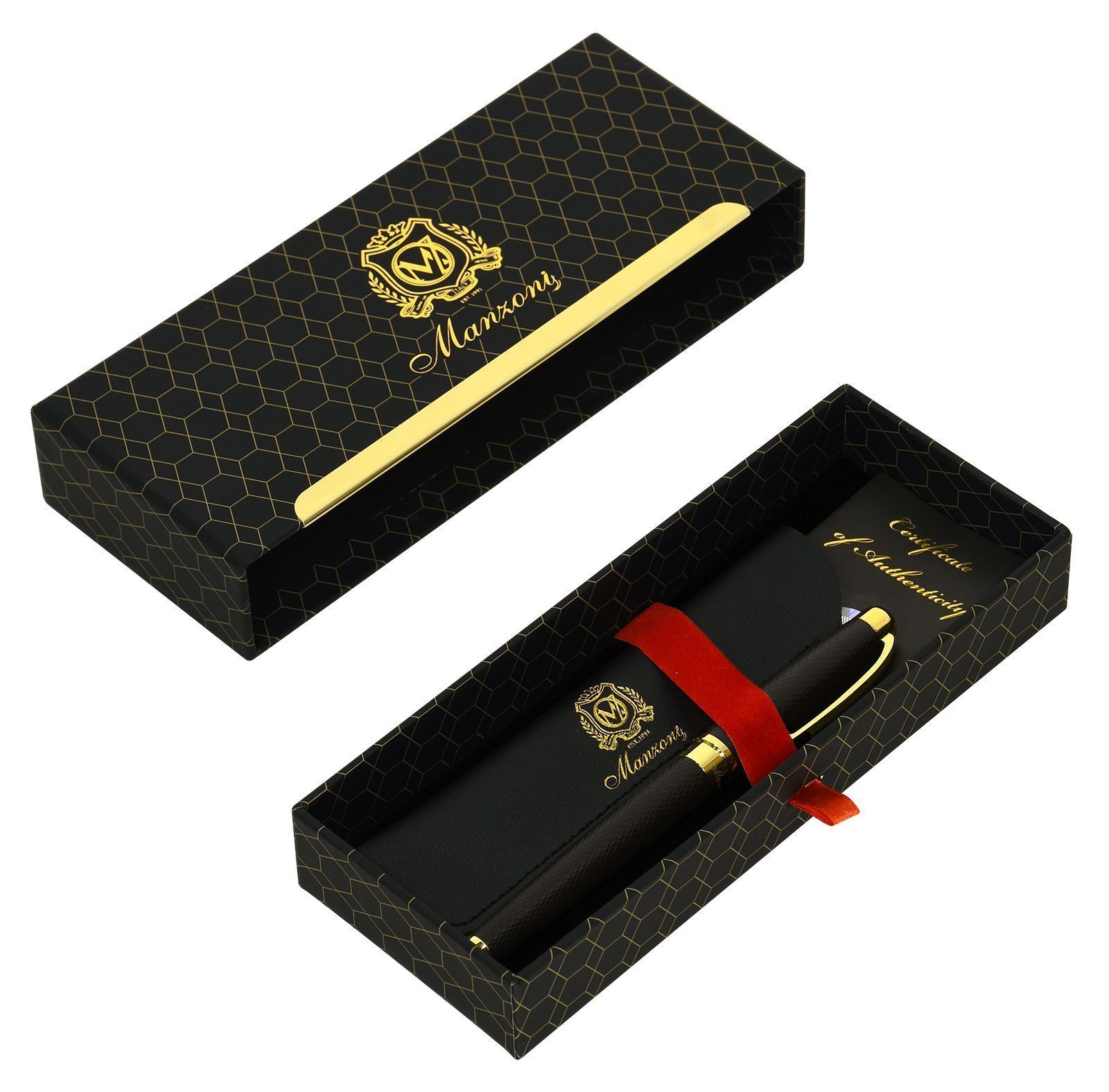 Ручка шариковая подарочная Manzoni Camogli синий 1 мм, корпус металл черн., золот., в футляре