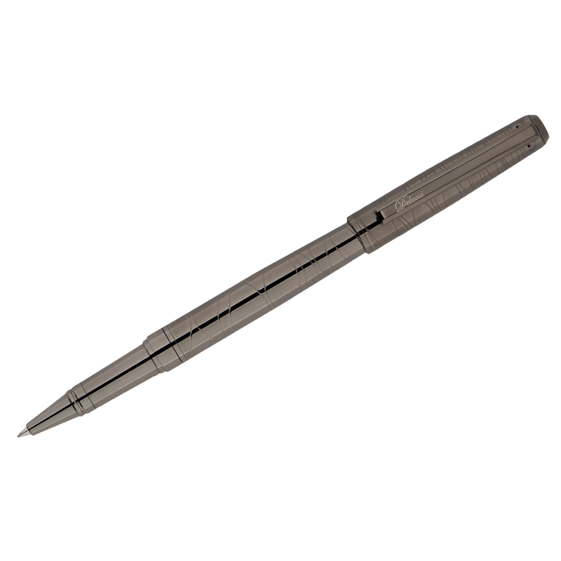 Ручка-роллер Delucci "Mistico". Цвет корпуса - оружейный металл. На колпачок и корпус нанесена изящная переливающаяся гравировка в виде изогнутых ассиметричных опоясывающих линий, придающая изделию магическую целостность. Гравировка логотипа на клипе. Изготовлена из меди, которая обеспечивает прочность и оптимальный вес для комфортного письма. Диаметр корпуса - 8,5 мм. Презентабельность и изысканность дизайна великолепно сочетаются с изумительным качеством письма. Цвет чернил - чёрный Диаметр пишущего узла - 0,6 мм. Упакована в кожаный подарочный футляр с тиснением логотипа, затем в бумажный рукав из тонированной бумаги с тиснением логотипа.