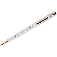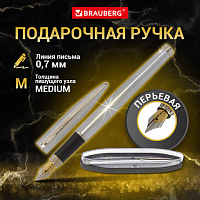 Ручка бизнес-класса перьевая BRAUBERG Maestro, СИНЯЯ, корпус серебристый с золотистыми деталями, линия письма 0,25 мм, 143469