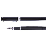 Ручка бизнес-класса перьевая BRAUBERG Larghetto, СИНЯЯ, корпус черный с хромированными деталями, линия письма 0,25 мм, 143477
