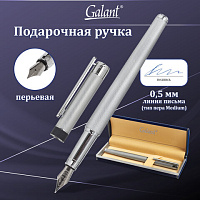 Ручка подарочная перьевая GALANT "SPIGEL", корпус серебристый, детали хромированные, узел 0,8 мм, 143530
