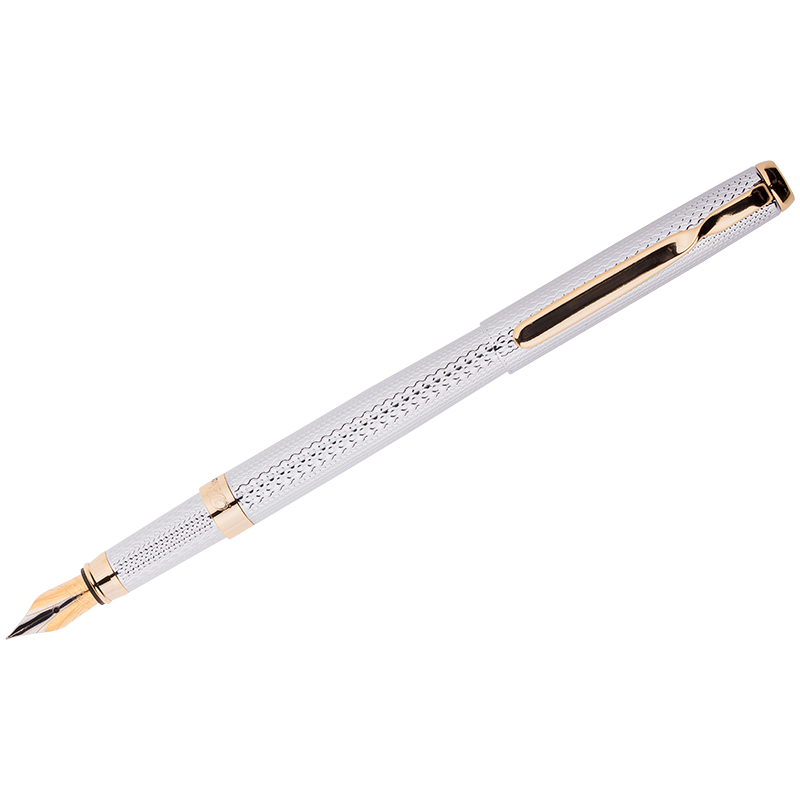 Перьевая ручка Delucci создана для настоящих ценителей классики. Цвет корпуса серебристый, с рифлением. Отделка золотистого цвета. Оригинальный клип, изящная гравировка. Диаметр пишущего узла - 0,8 мм.