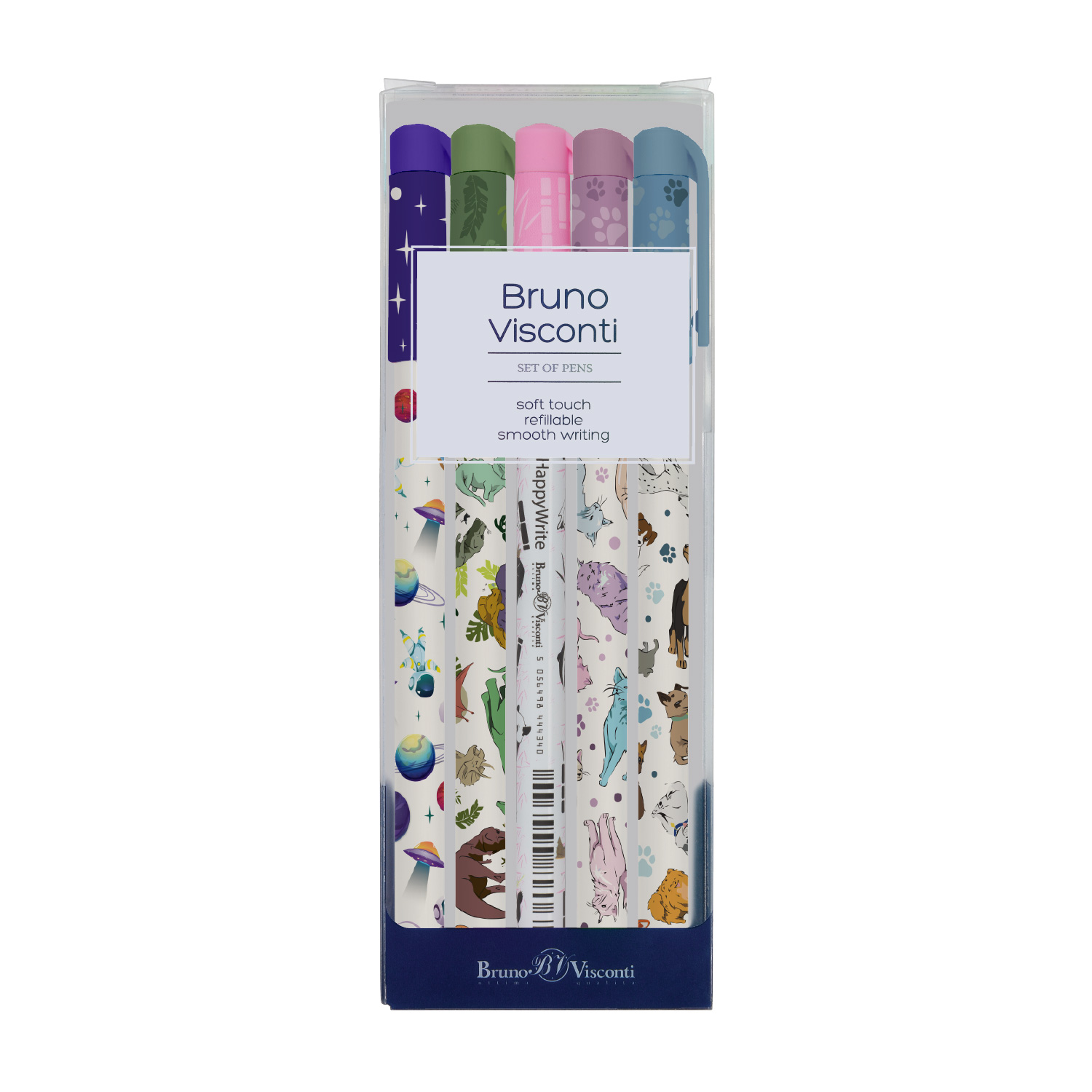 НАБОР ИЗ 5-ТИ РУЧЕК "HappyWrite. Микс 3" ШАРИКОВЫХ 0.5 ММ, СИНЯЯ