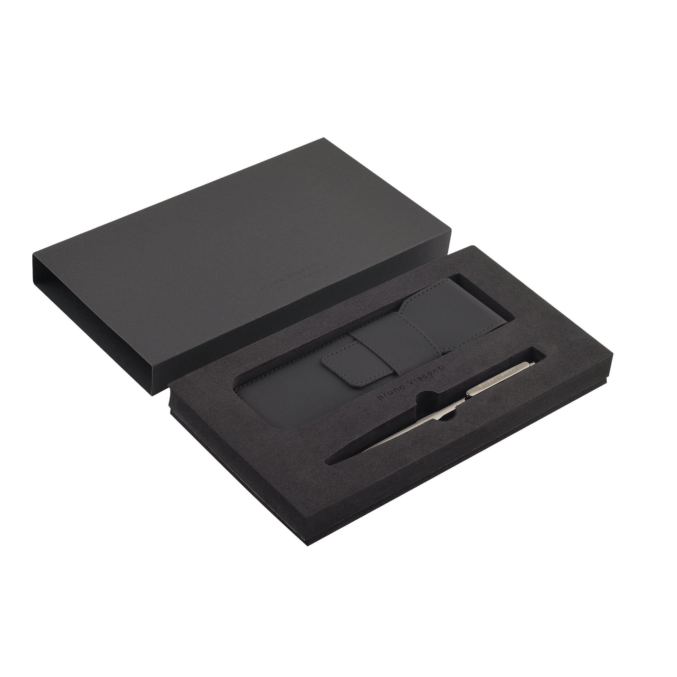 РУЧКА "FIRENZE" В ПОДАРОЧНОМ ЧЕХЛЕ, 1.0 ММ, СИНЯЯ (корпус черная ворон сталь, чехол черный)
