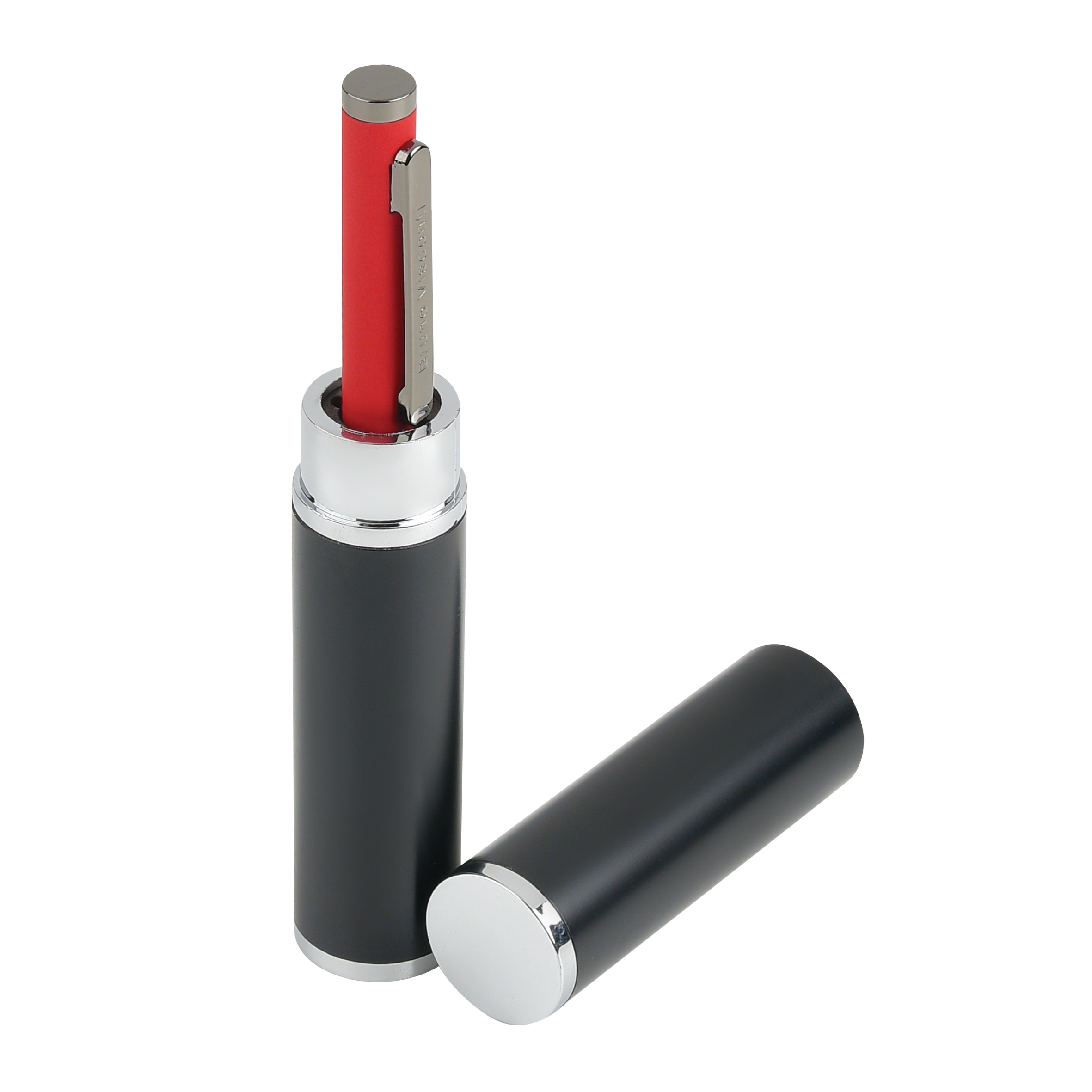 РУЧКА "FIRENZE" В ТУБУСЕ КРУГЛОЙ ФОРМЫ 1.00 ММ, СИНЯЯ (корпус красный, футляр черный)