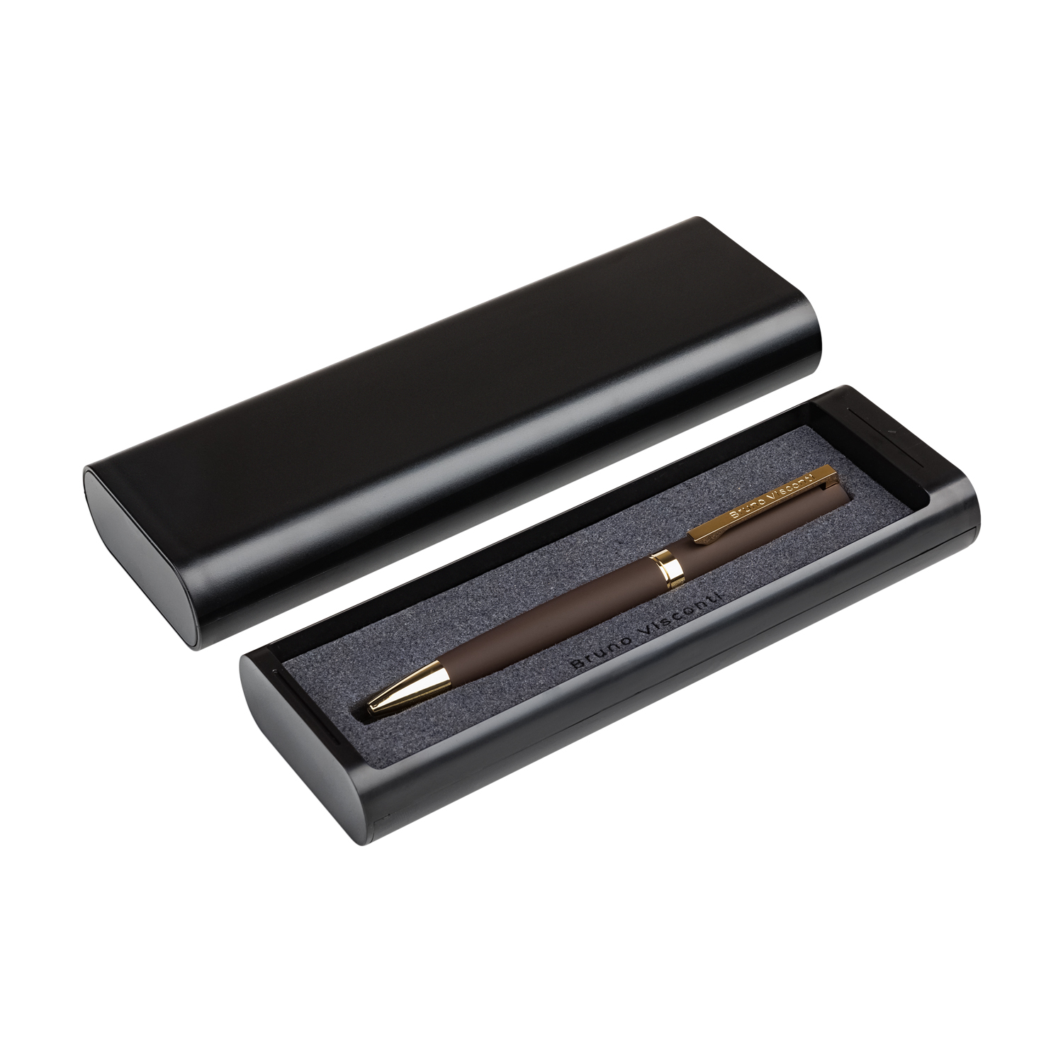 РУЧКА "MILANO" В ФУТЛЯРЕ-СЛАЙДЕРЕ, 1.0 ММ, СИНЯЯ (корпус коричневый, футляр черный)