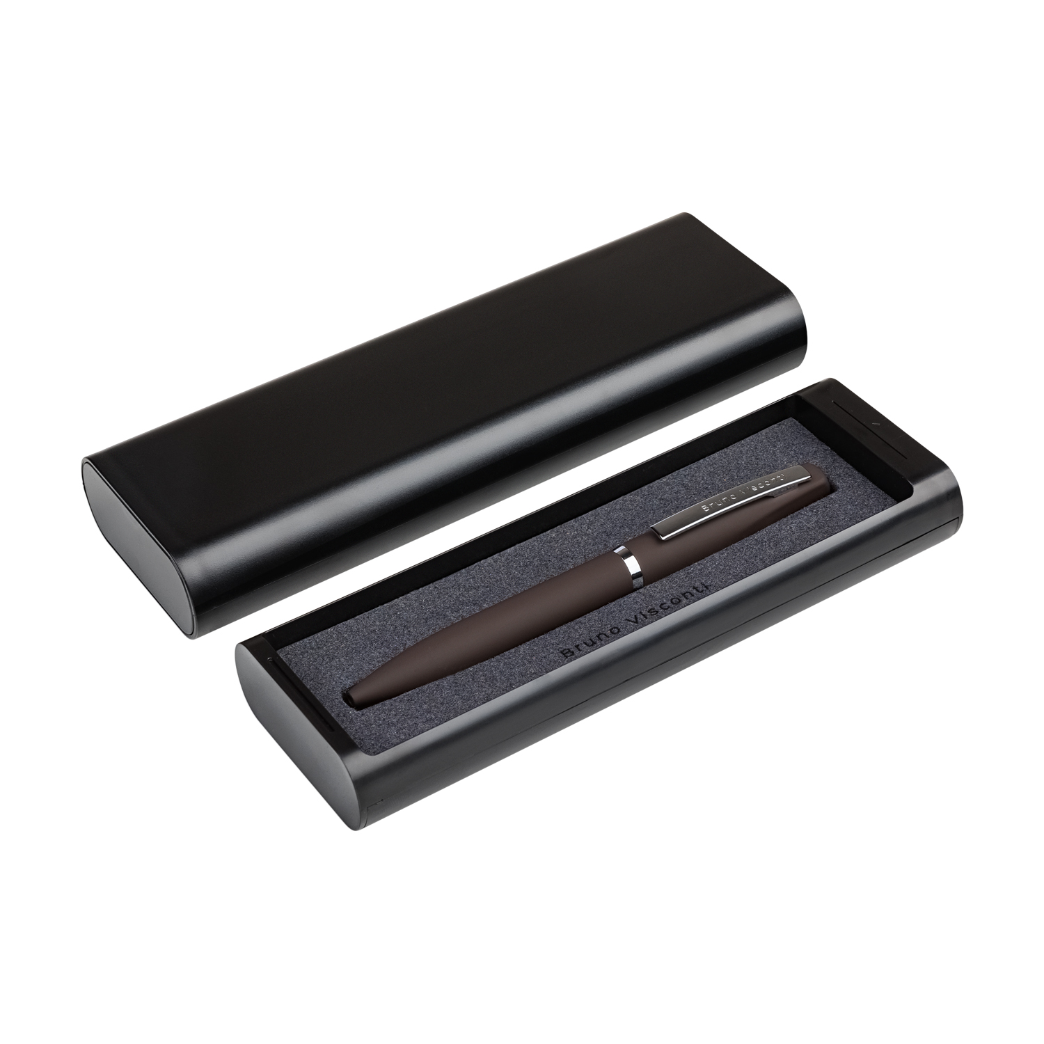 РУЧКА "PORTOFINO" В ФУТЛЯРЕ-СЛАЙДЕРЕ, 1.0 ММ, СИНЯЯ (корпус коричневый, футляр черный)