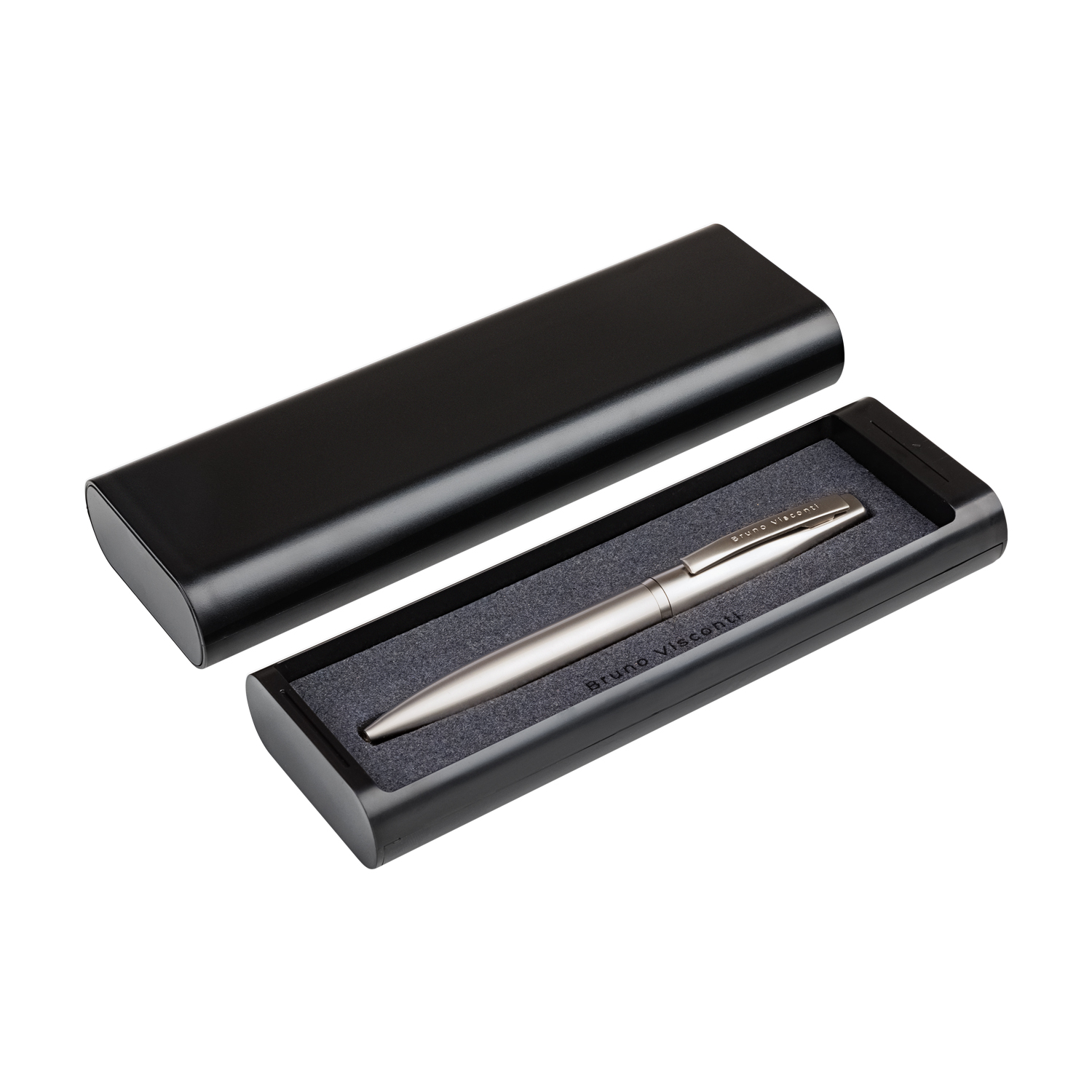 РУЧКА "PORTOFINO" В ФУТЛЯРЕ-СЛАЙДЕРЕ, 1.0 ММ, СИНЯЯ (корпус шампань, футляр черный)