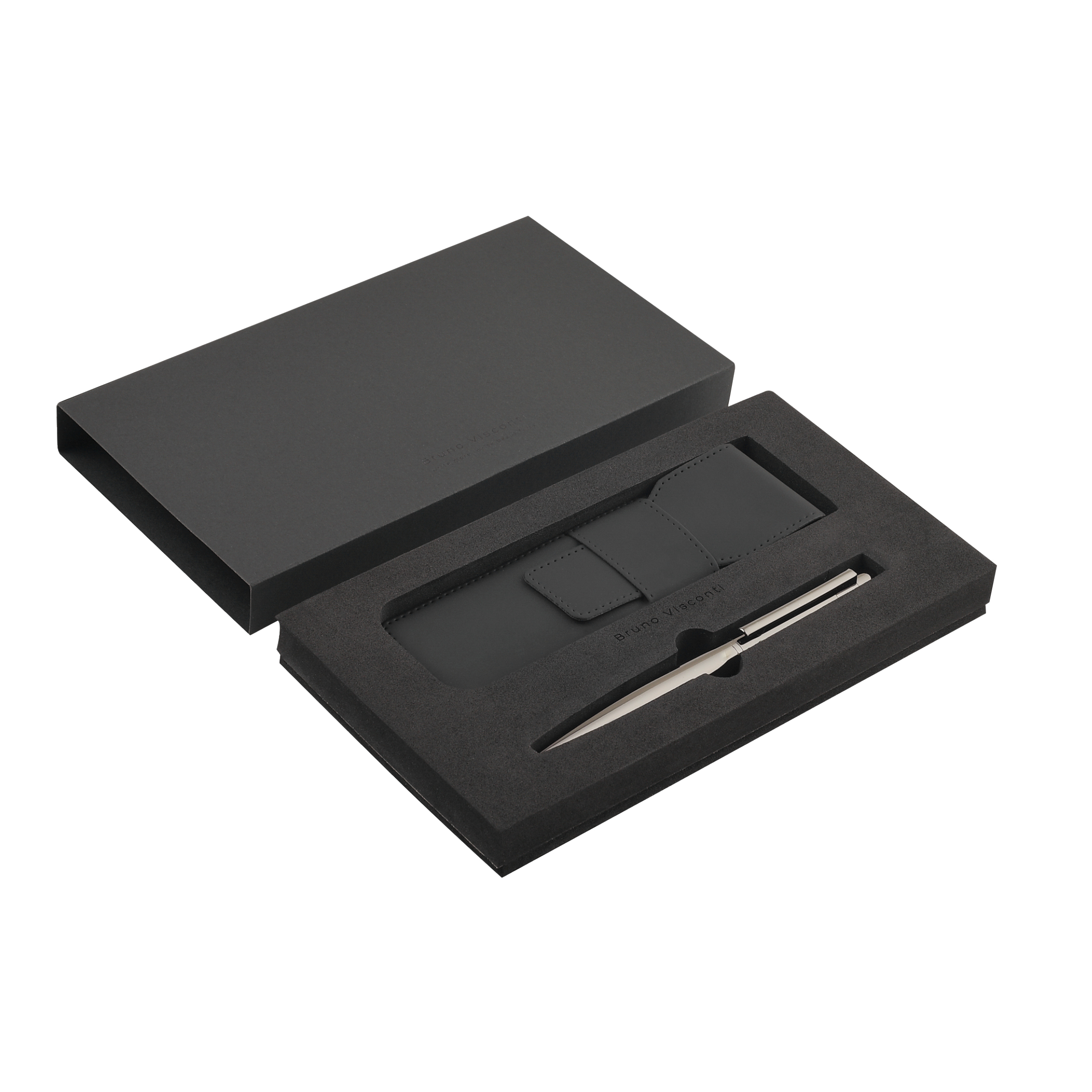 РУЧКА "VERONA" В ПОДАРОЧНОМ ЧЕХЛЕ, 1.0 ММ, СИНЯЯ (корпус черная ворон сталь, чехол черный)