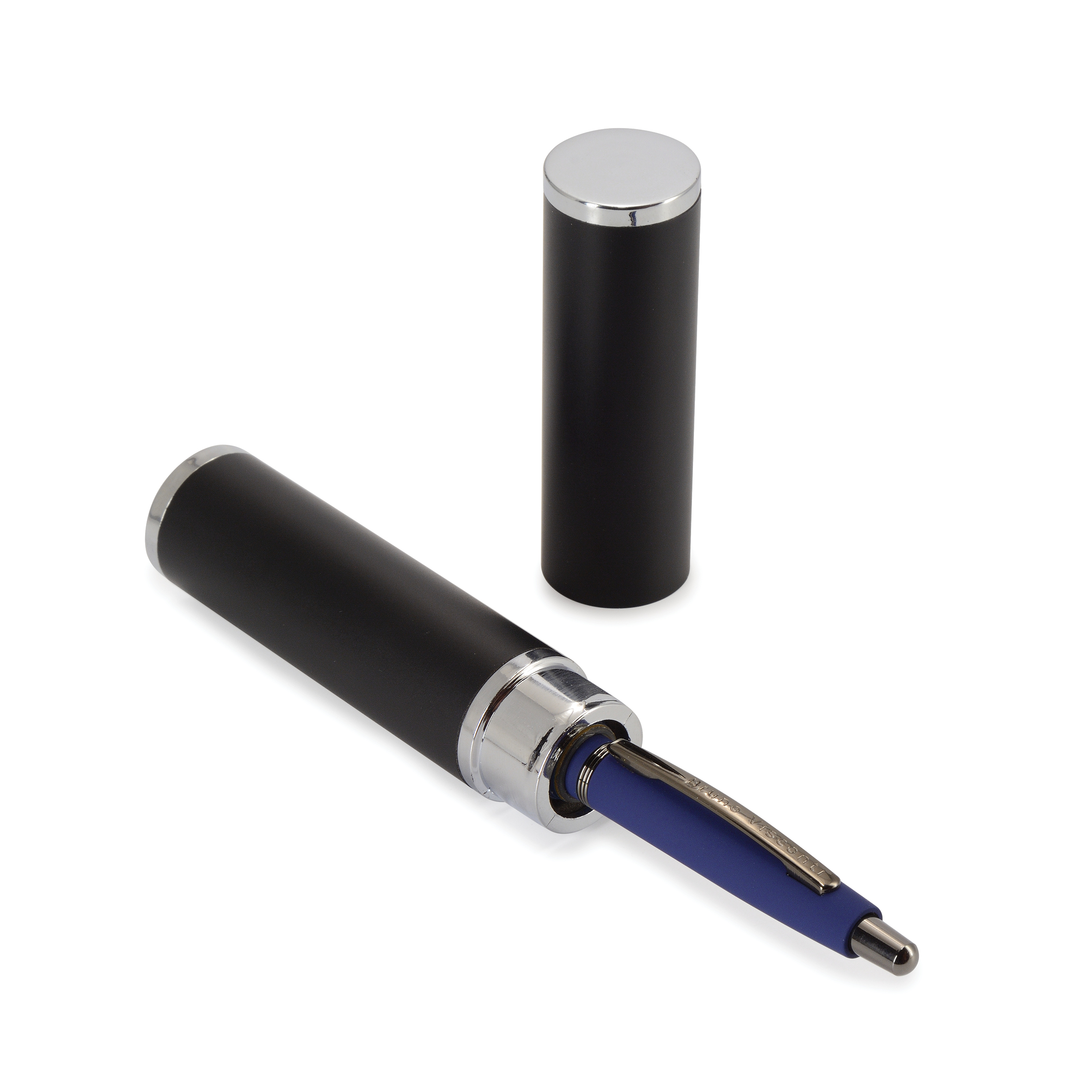 РУЧКА "SAN REMO" В ТУБУСЕ КРУГЛОЙ ФОРМЫ 1,0 ММ, СИНЯЯ (корпус синий, футляр черный)