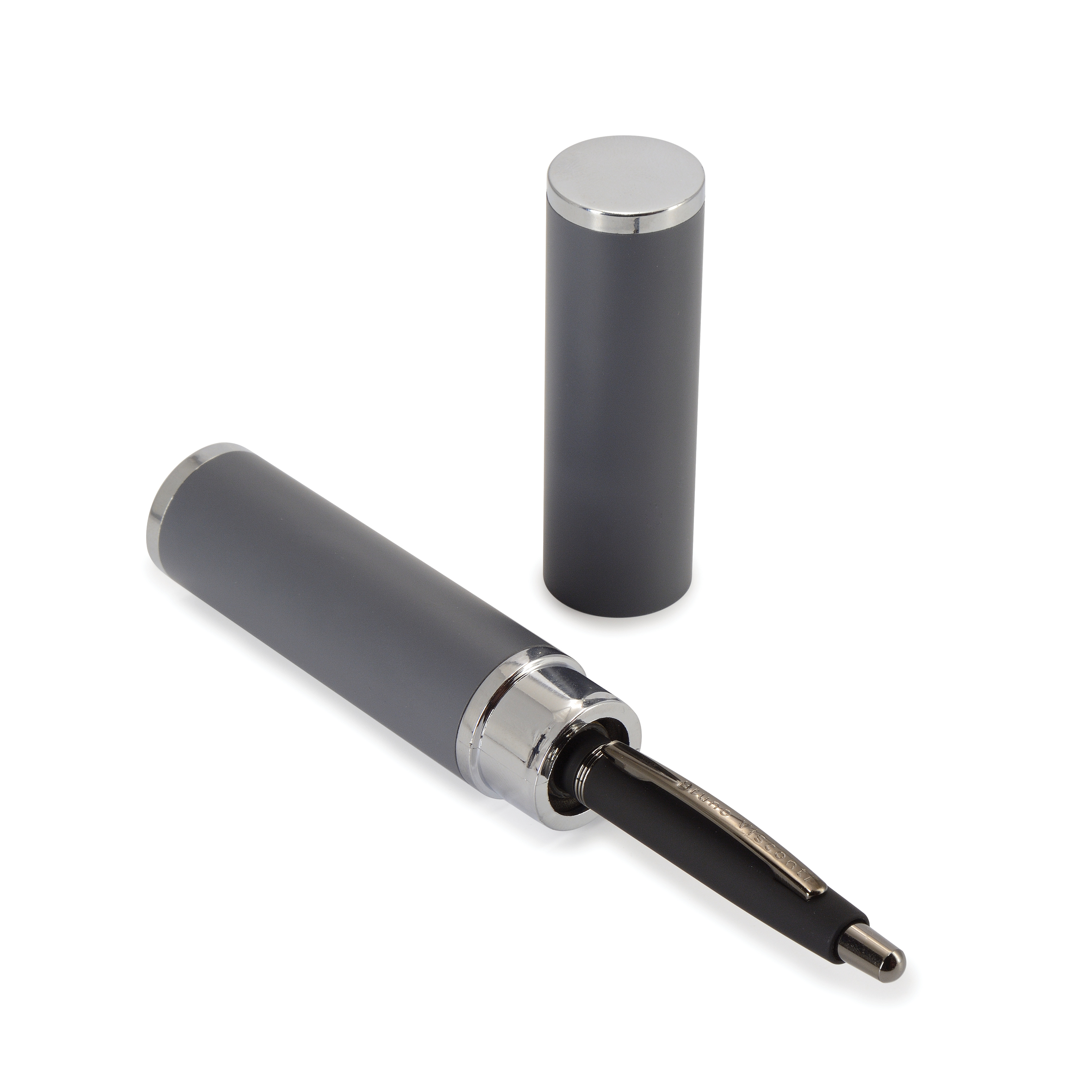 РУЧКА "SAN REMO" В ТУБУСЕ КРУГЛОЙ ФОРМЫ 1,0 ММ, СИНЯЯ (корпус черный, футляр серый)
