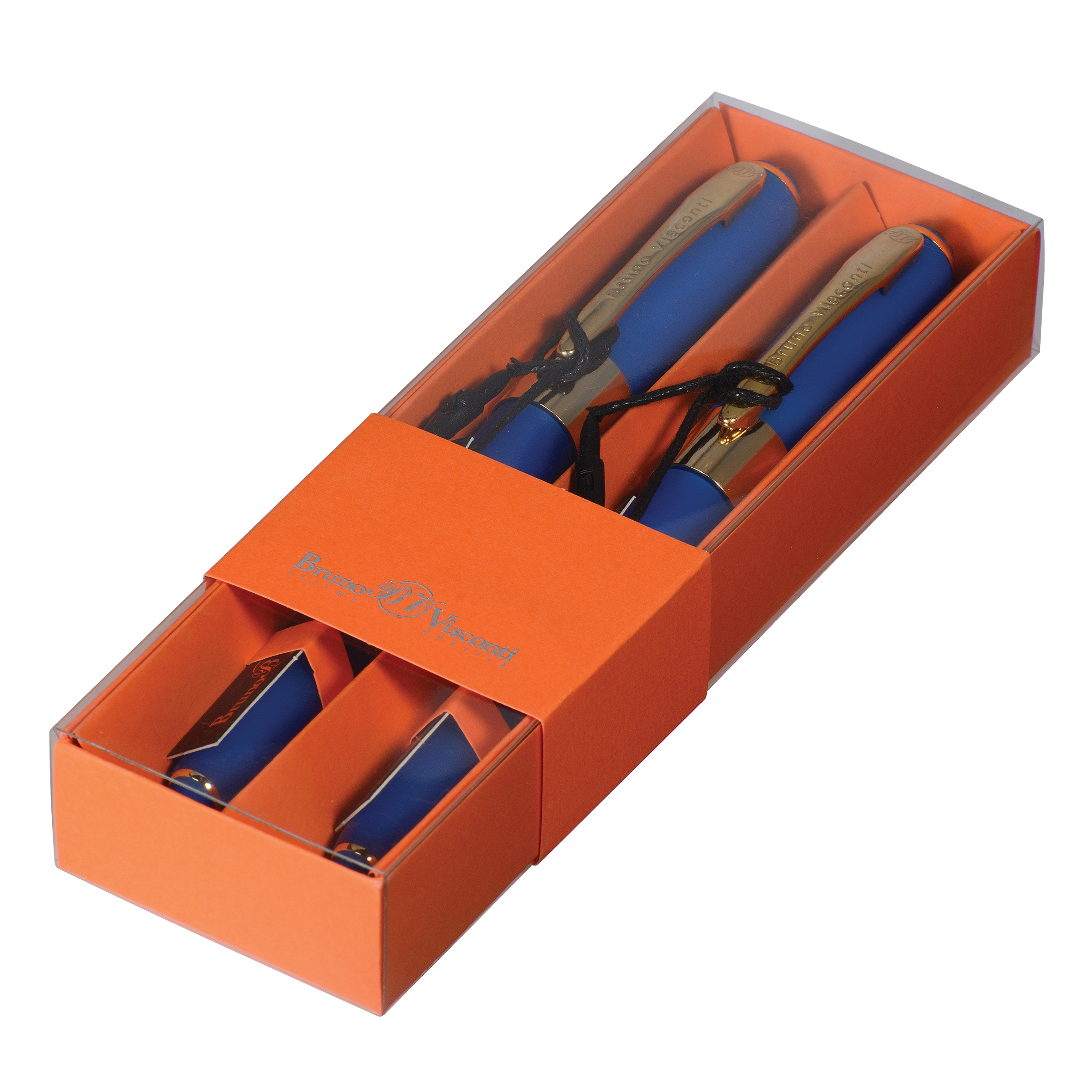 НАБОР ИЗ 2-Х РУЧЕК В ФУТЛЯРЕ "MONACO" ШАРИКОВЫХ 0.5 ММ, СИНЯЯ (ярко-синий корпус, оранжевая коробка)