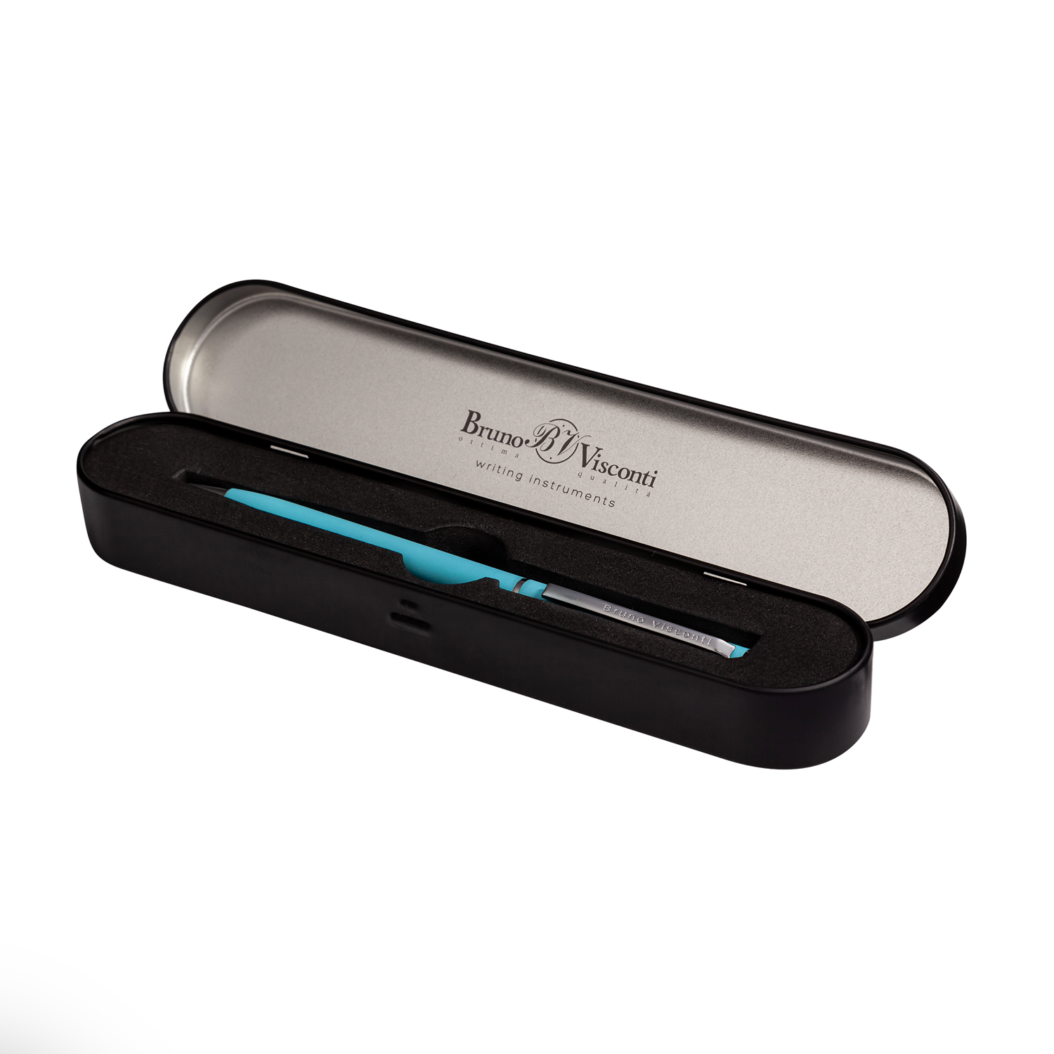 РУЧКА "PALERMO" В МЕТАЛЛИЧЕСКОМ ФУТЛЯРЕ 0,7 ММ, СИНЯЯ (бирюзовый корпус, футляр черный)