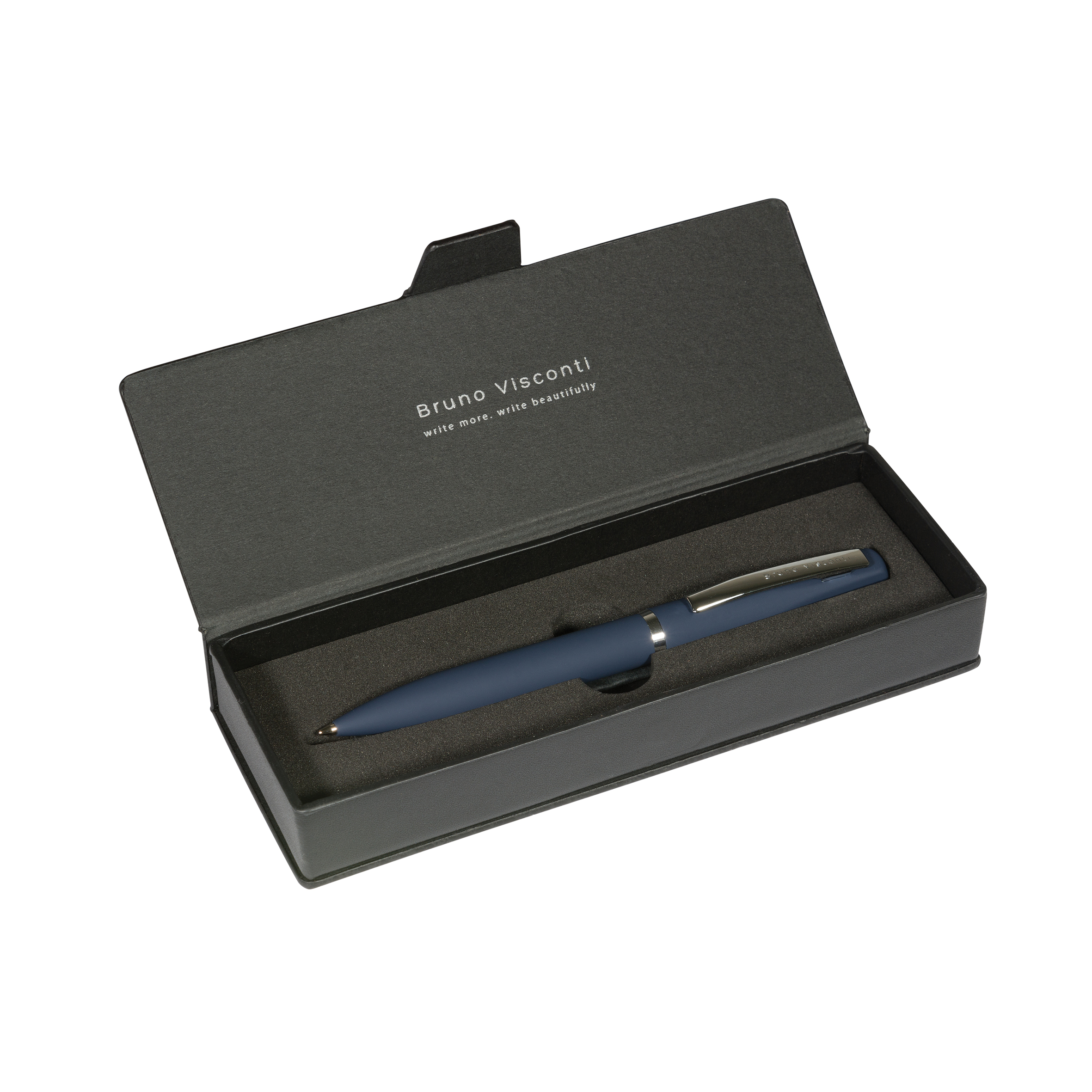 РУЧКА "PORTOFINO" В ФУТЛЯРЕ ИЗ ЭКОКОЖИ 1.0 ММ, СИНЯЯ (корпус синий, футляр черный)