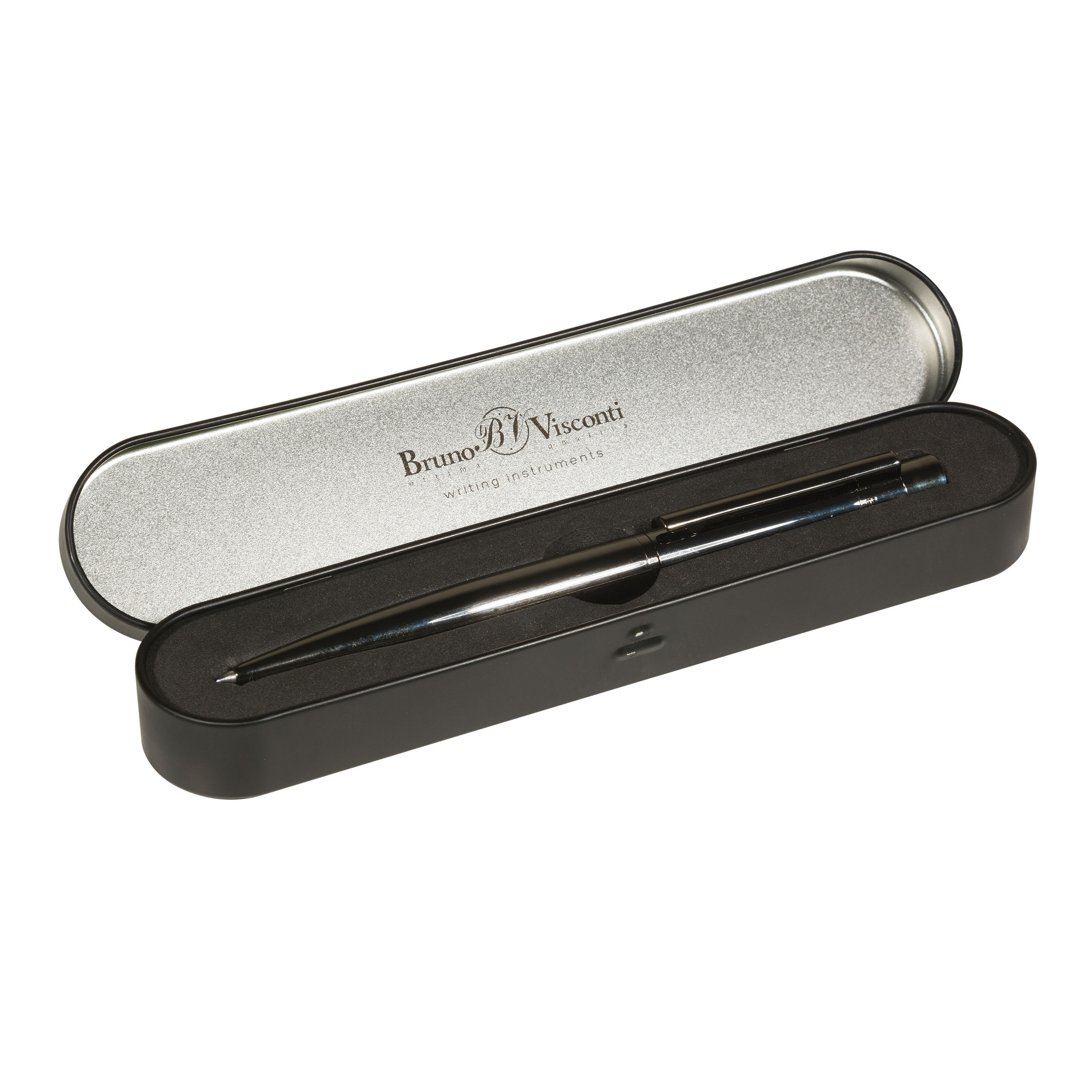 Ручка BrunoVisconti® "VERONA" В МЕТАЛЛИЧЕСКОМ ФУТЛЯРЕ 1.0 ММ, СИНЯЯ (корпус черный вороненая сталь, футляр черный) Арт. 20-0342/01