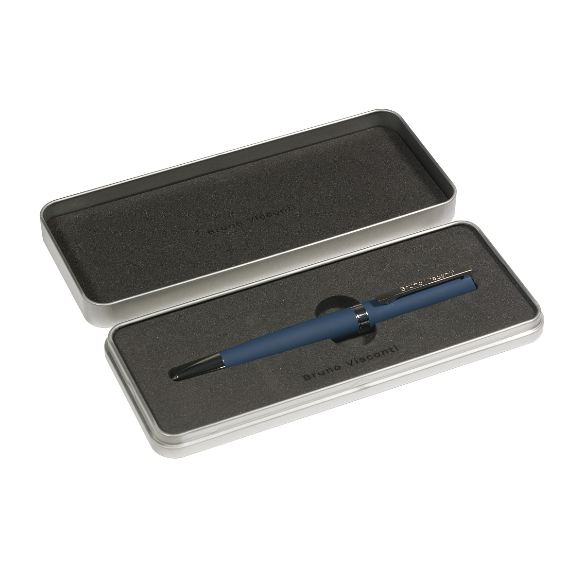 РУЧКА "MILANO" В БОЛЬШОМ МЕТАЛЛ. PREMIUM ФУТЛЯРЕ 1.0 ММ, СИНЯЯ (корпус синий, футляр серебряный)