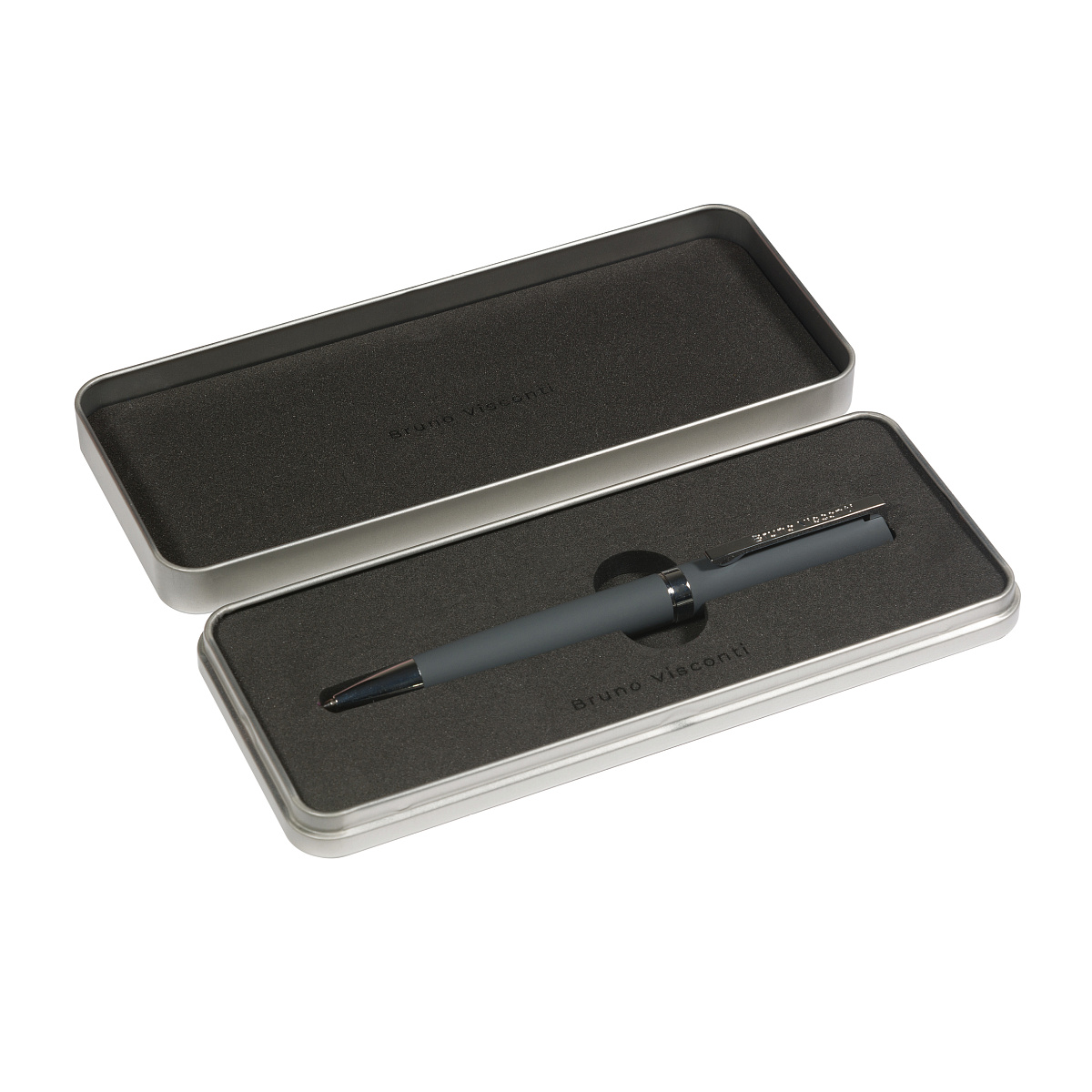 РУЧКА "MILANO" В БОЛЬШОМ МЕТАЛЛ. PREMIUM ФУТЛЯРЕ 1.0ММ, СИНЯЯ (корпус серый, футляр серебряный)
