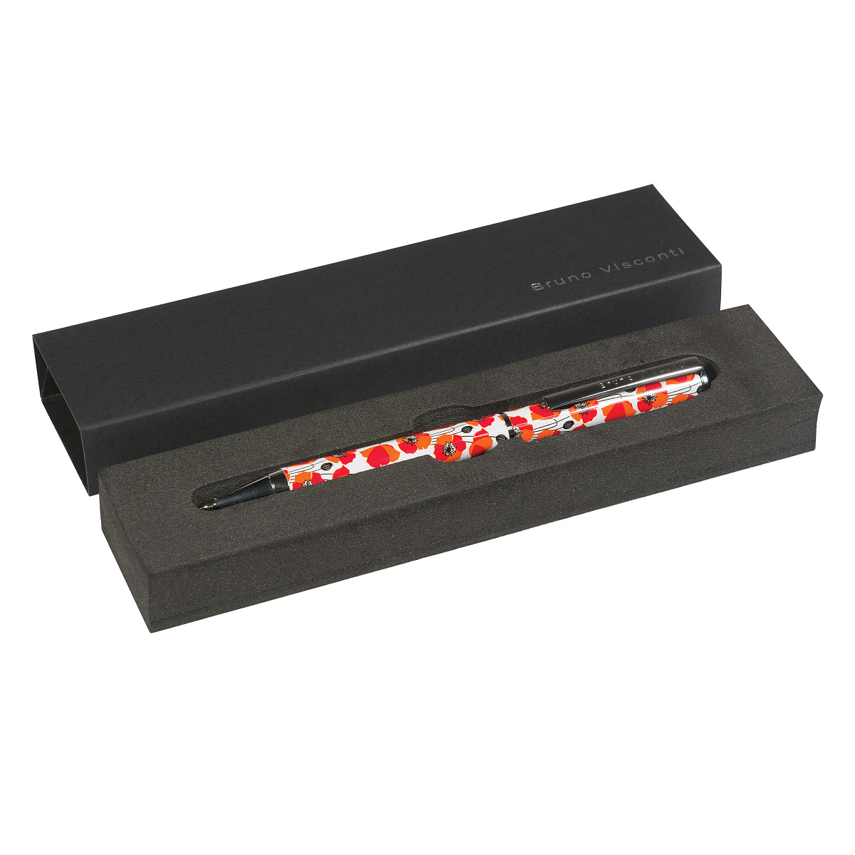 РУЧКА "DOLCE VITA. Маки" В ПОДАРОЧНОМ ФУТЛЯРЕ 0,7 ММ, СИНЯЯ (футляр черный)