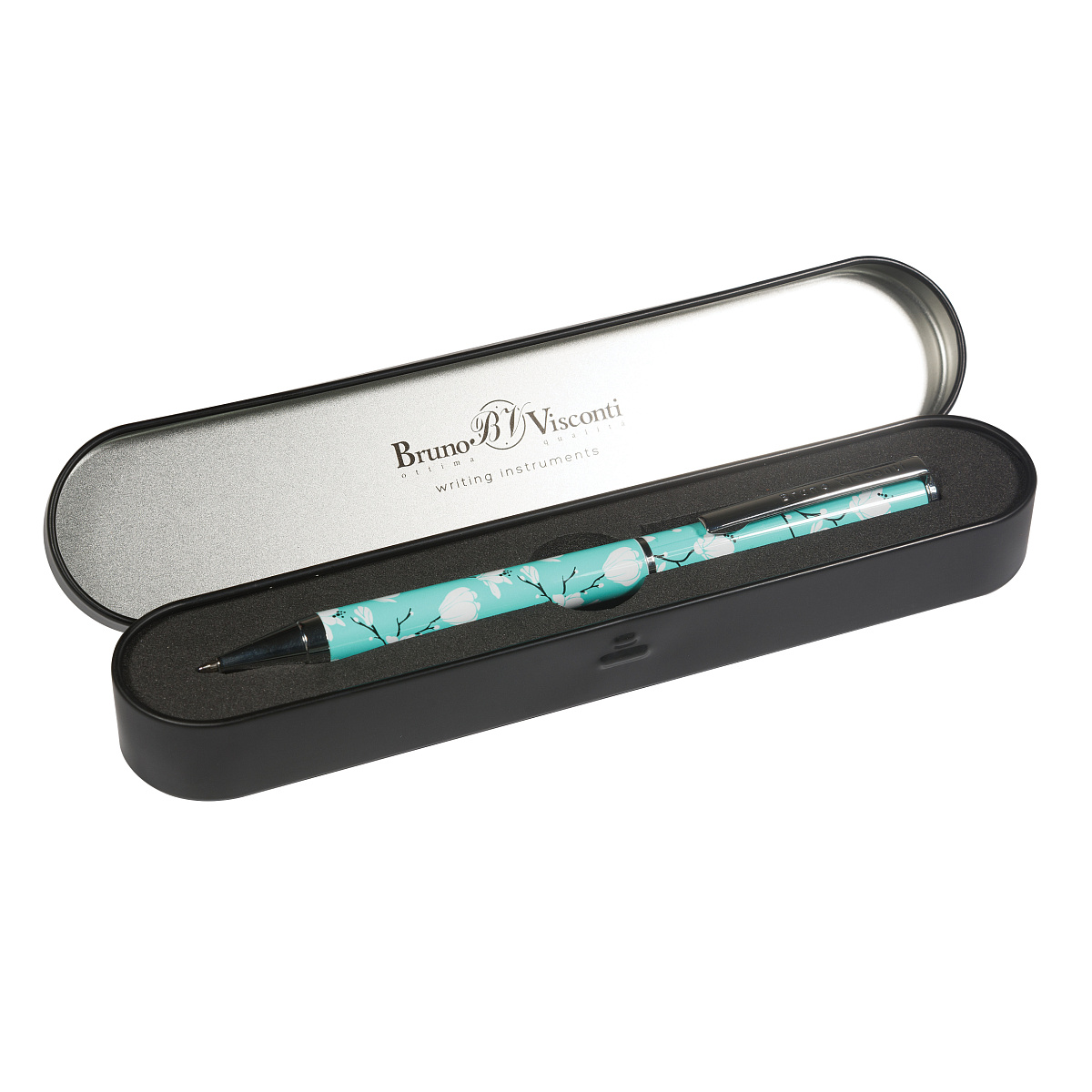 РУЧКА "DOLCE VITA. Магнолия." В МЕТАЛЛИЧЕСКОМ ФУТЛЯРЕ 0,7 ММ, СИНЯЯ (футляр черный)