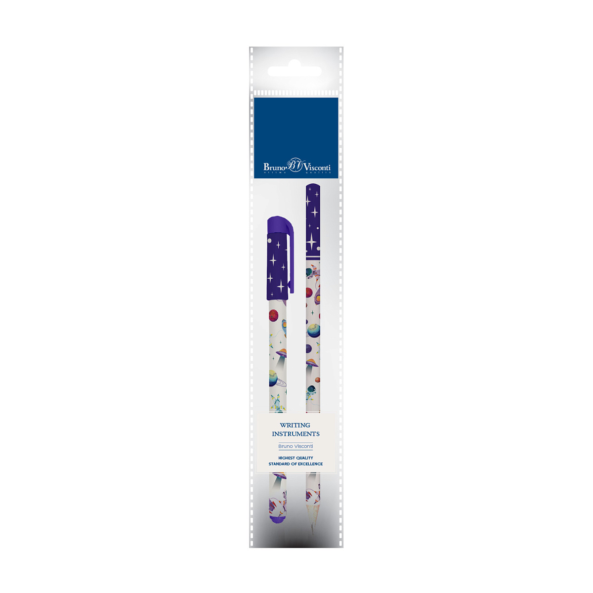 НАБОР: РУЧКА "HappyWrite" ШАР. 0.5 мм И КАРАНДАШ ЧЕРН. НВ "HappyGraphix" Космос