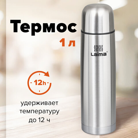 Термос ЛАЙМА классический с узким горлом, 1 л, нержавеющая сталь, 601414